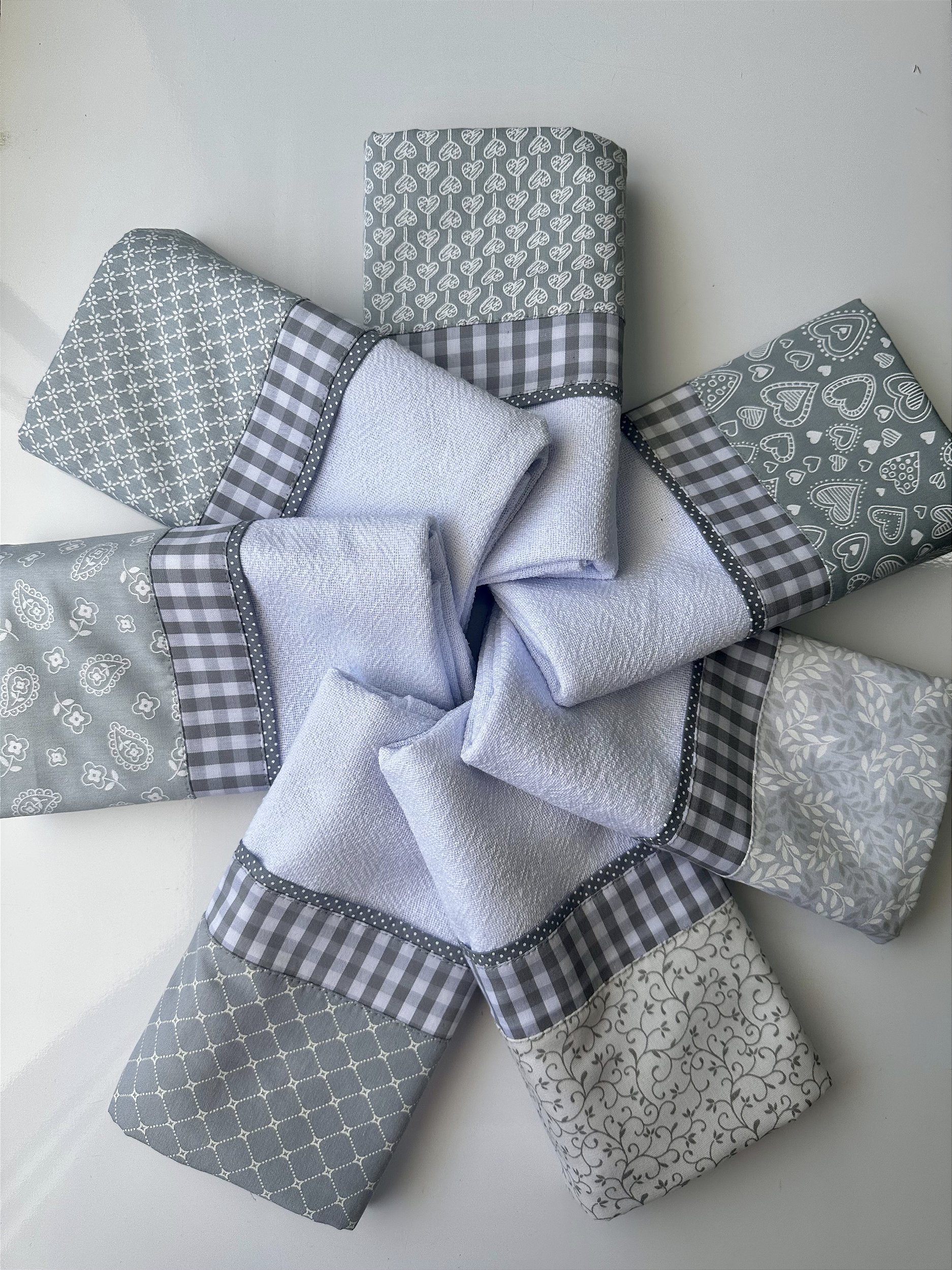 Sacaria 100% algodão tipo pé de galinha.