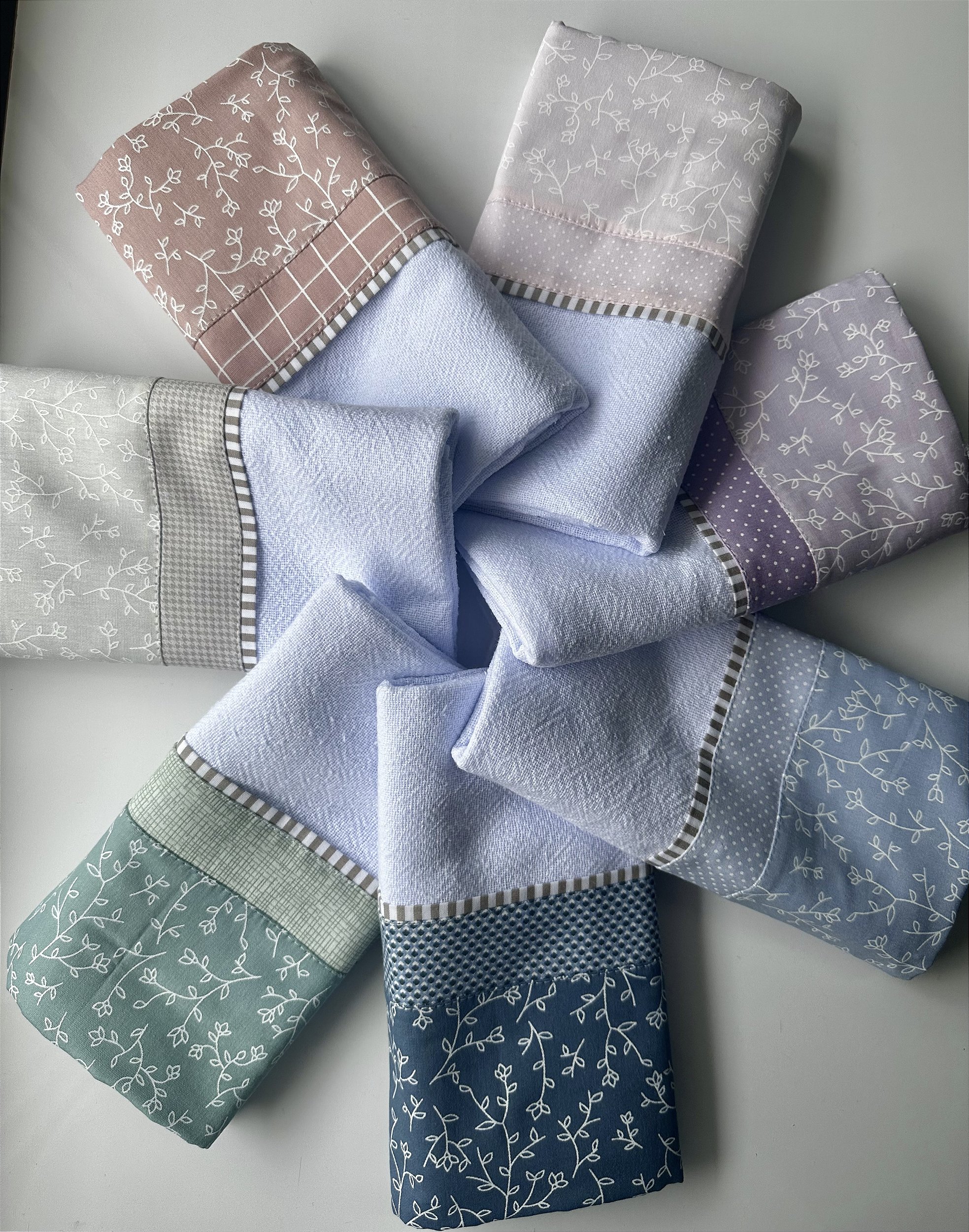 Sacaria 100% algodão tipo pé de galinha.